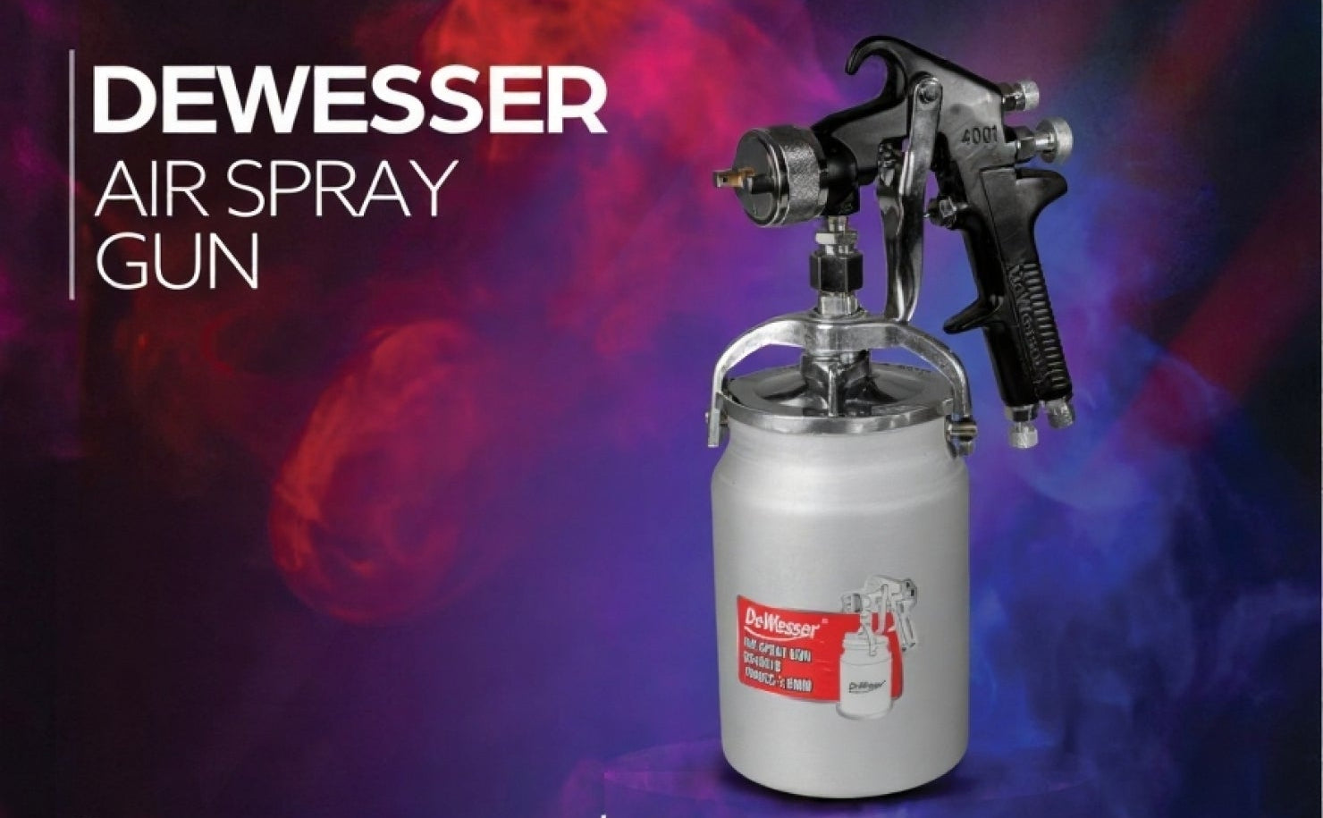 The DEWESSER AIR SPRAY GUN is a tool designed for efficient paint application, likely requiring an external air compressor.